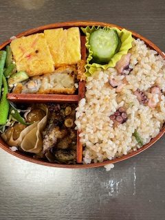 今日のワタシのお昼のお弁当、毎週土曜日・日曜日・朝8時30分から12時位まで下津井漁業協同組合前で、たこ焼き・たこめし・等を販売している