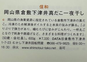 何とか、信和も「倉敷/下津井真だこ一夜干し」数量限定で確保しています。